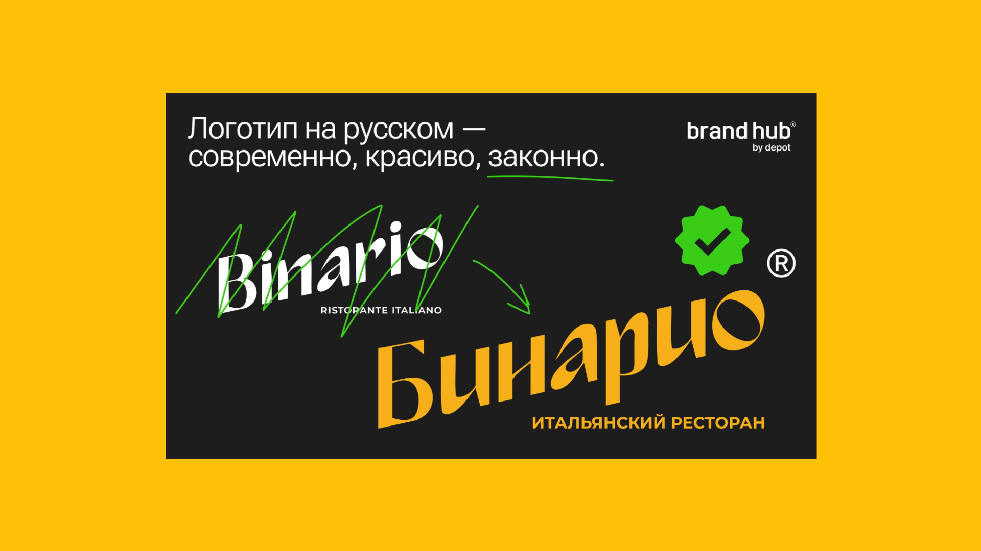 В результате ваш бренд выглядит так, как будто он изначально был задуман на русском языке: естественно, красиво и органично. Кейс Бинарио можно посмотреть у нас в портфолио.