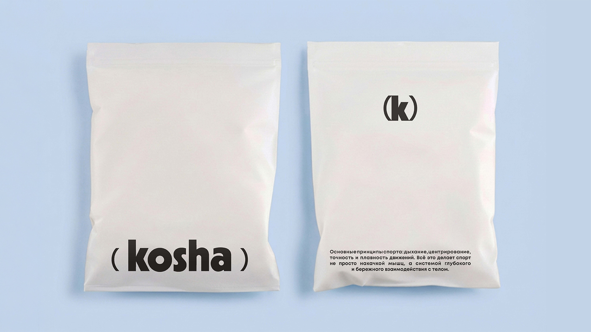 Логотип — имя бренда в нижнем регистре, заключенное в скобки. Две основные версии для всех коммуникаций. Графический знак строится на тех же элементах: буква k в скобках. Скобки становятся самостоятельным фирменным элементом — символом защиты, оберегания, поддержки. Они формируют визуальную рамку и работают как тихий знак надежности.